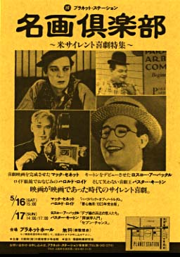 『プラネット・ステーション/名画倶楽部』の第1回がこの企画である。喜劇映画を完成させたマック・セネット、キートンをデヴューさせたロスコー・アーバックル、ロイド眼鏡でお馴染みのハロルド・ロイド、そして笑わない喜劇王バスター・キートンという組み合わせで、上映が行われた。