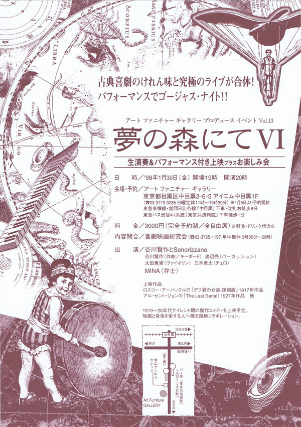 クリスマス・イベントだった企画を新年イベントとしてリニューアル。バンド・マスターこそ谷川氏であるが、今回は上映作品ごとに参加アーティスト各自がセッション・リーダーを務める手法にて、演奏のバリエーションを一層深めた。また、谷川氏の指示によって『譜面作成は禁止』のルールを採用、インプロビゼーション的展開も一段と効果を持った。