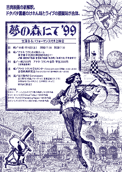過去6回の超満員のギャラリーに溢れていたエネルギーとアットホームな雰囲気を残しつつ、大ホールの観客へ如何にして挑むかが「夢の森にて'99」のテーマとなった。