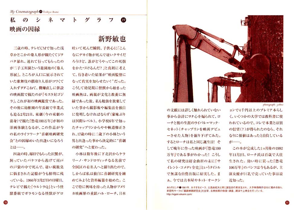 毎号豪華な映画関係者による‘私のシネマトグラフ’が掲載されておりますが、今回は歴代で最もサイテーな人材=当会代表・新野敏也が遂に登場となりました!