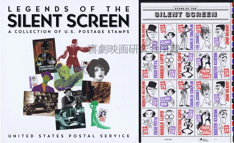 1994年にアメリカの郵便局で限定発売の"LEGEND OF THE SILENT SCREEN"という切手には、チャーリー・チャップリン、バスター・キートン、ハロルド・ロイド、キーストン警官隊のイラストが刷られていた。額面29セントの切手20枚1組(ルドルフ・ヴァレンチノ、クララ・ボウ、セダ・バラ、ロン・チャニー、ジョン・ギルバートと組まれている)がハードカバーの大きな解説書(30.5cm角の正方形)とセットの場合は24ドル95セントで売られていた。切手シートは現在もネット・オークションでたまに見かけるが、なぜか解説書は発売当時から入手困難だった。
